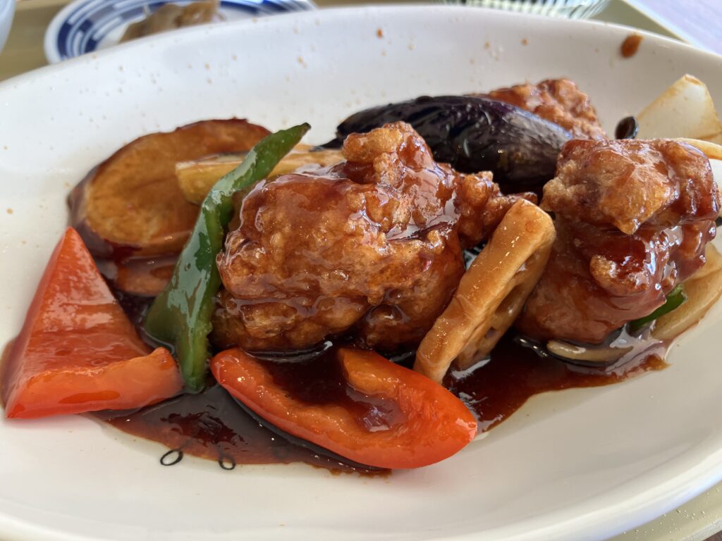 もう一品頼んだ鶏肉と野菜の黒酢あんはこちら。